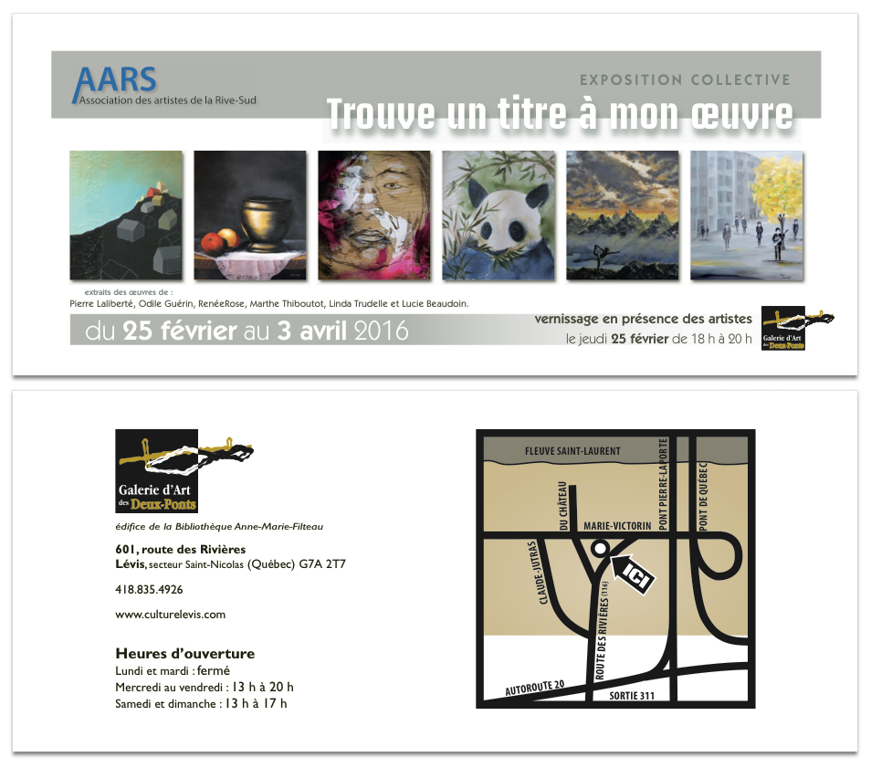 EXPOSITION À : LÉVIS | ST-PAMPHILE | DANVILLE | ANCIENNE-LORETTE
